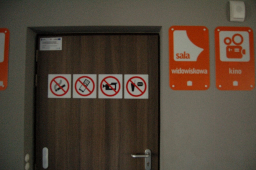 Drogowskazy te wskazują, iż w kinie, zgodnie z jego regulaminem, nie można spożywać posiłków, robić zdjęć czy nagrywać filmów. Ponadto, bezwzględnie zakazuje się palenia papierosów oraz rozmawiania przez telefon komórkowy podczas trwania seansu czy wydarzenia artystycznego.