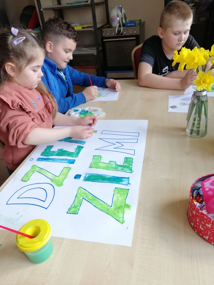 W Warniłęgu w ramach Dnia Ziemi dzieci wykonały bransoletki z koralików, wiosenną dekorację świetlicy oraz grały w Uno.