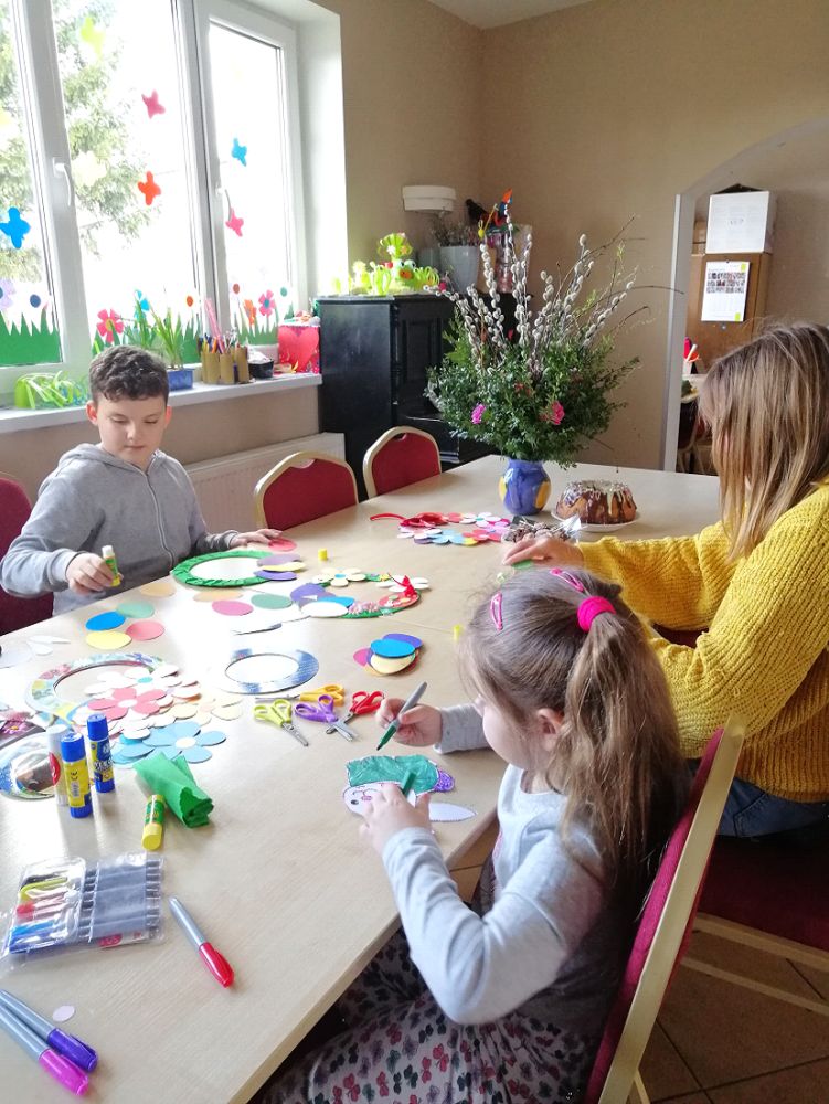W Chlebowie dzieci i młodzież przygotowały się do świąt, m.in. malując pisanki, tworząc palmy wielkanocne oraz ozdabiając świetlicę. W międzyczasie korzystały z zabawy na świeżym powietrzu.
