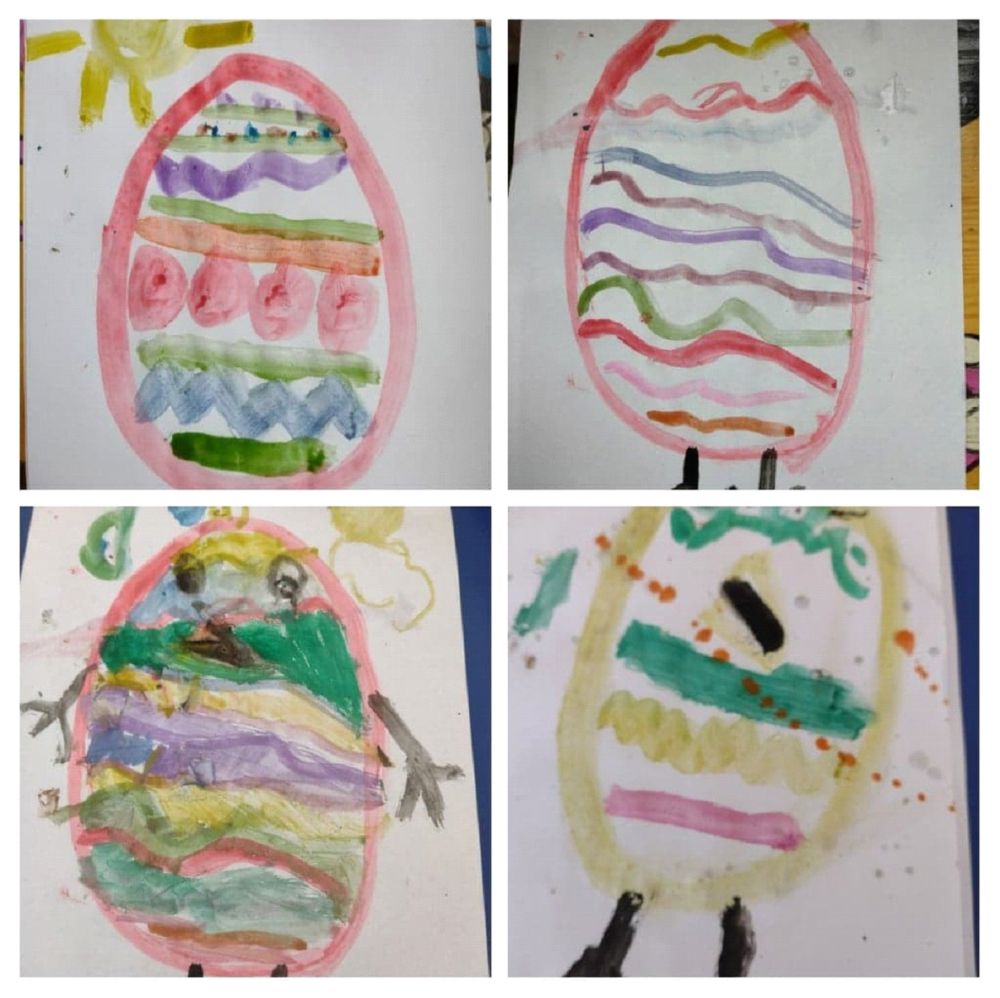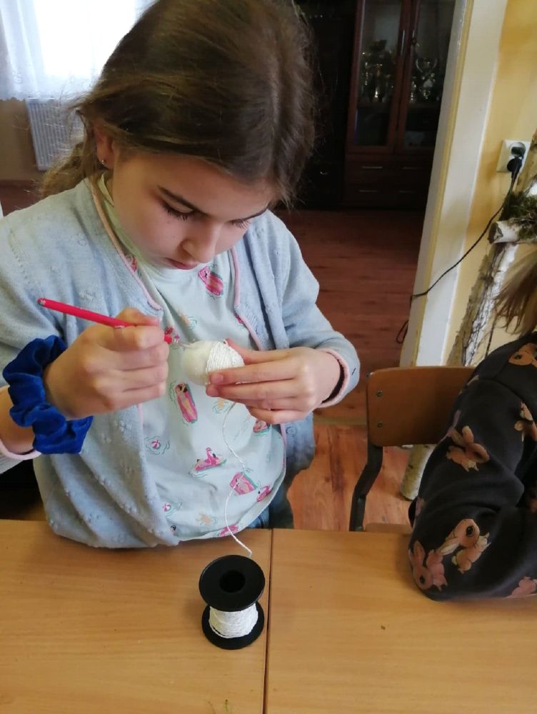 W Darskowie dużo się działo. Było tworzenie bransoletek, breloków, malowanie mega pisanek, zabawy na podwórku, śpiewy, malowanie farbami i tworzenie makram.