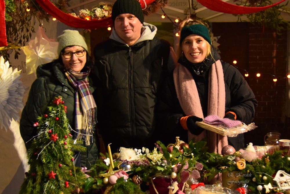 Za nami tegoroczny Jarmark Świąteczny ?. Na złocienieckim deptaku w miniony piątek czuć było magiczną atmosferę nadchodzących świąt. Stoiska rękodzielników, rzemieślników i przeróżnych stowarzyszeń, instytucji i kół przyciągały nas zapachami korzennych przypraw, domowych potraw i wyrobów rzemieślniczych, a wzrok przyciągały wykonane ze szczególną dbałością stroiki, ozdoby choinkowe czy skrzaty. Nie mogło zabraknąć Świętego Mikołaja, który rozdawał dzieciom słodkości, słuchał ich prezentowych marzeń i tulił każdego, kto miał na to ochotę. Przy jego chatce dzieci mogły napisać do niego list i potańczyć z elfami w animacyjnych zabawach. Świątecznej magii naszemu jarmarkowi w tym roku dodała karuzela wenecka, która nie dość, że była piękną ozdobą to wywoływała uśmiech na twarzach dzieci i dorosłych.