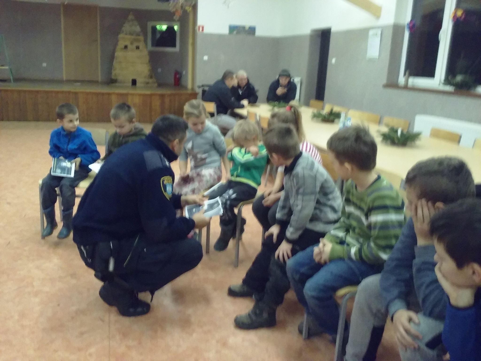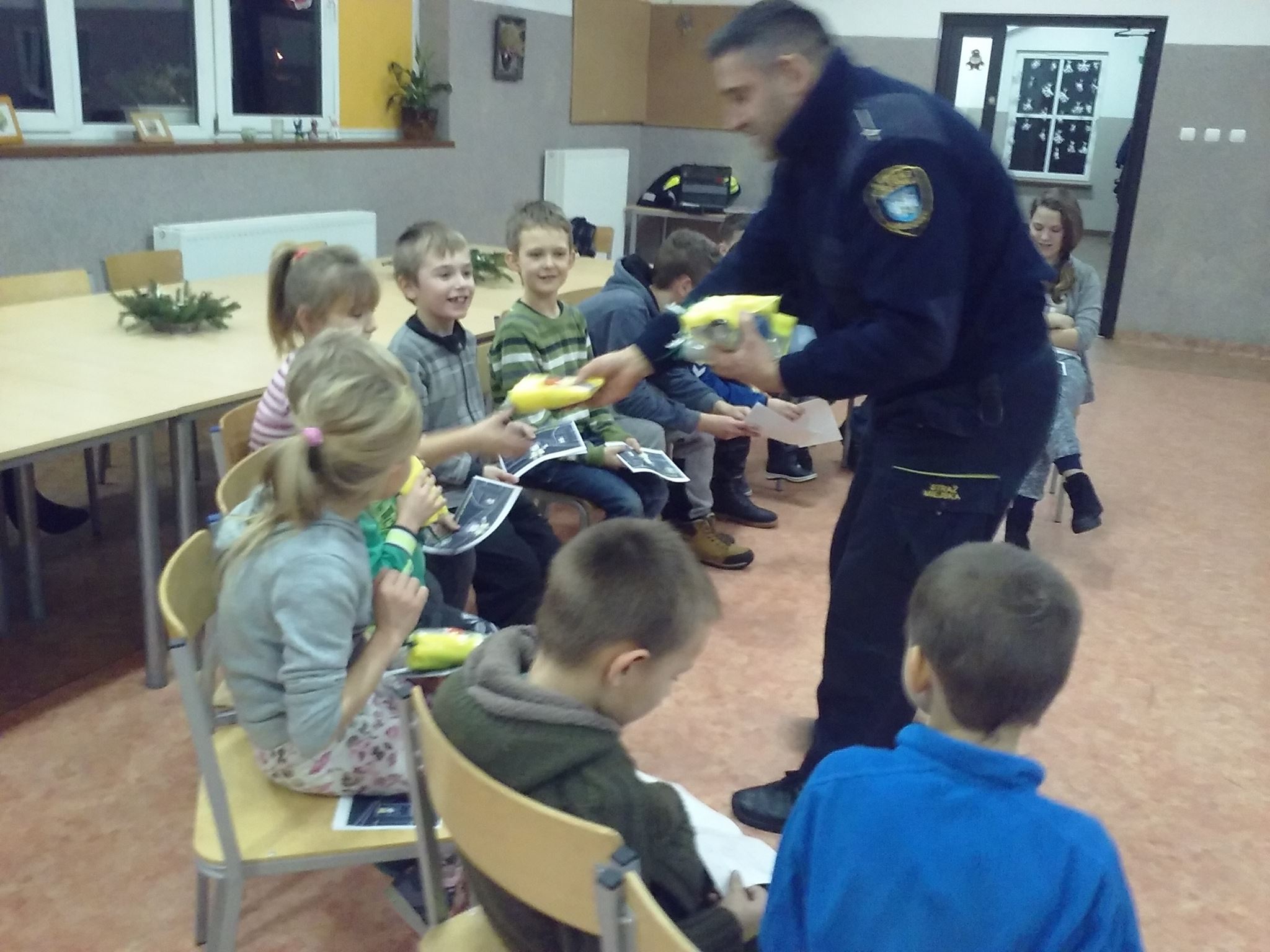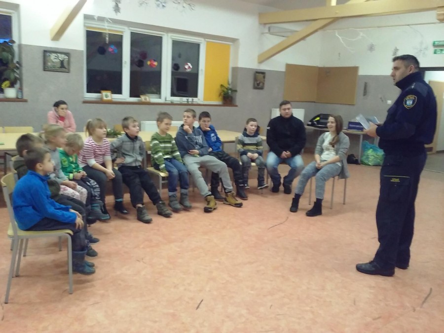"Bądź widoczny na drodze" - taką rozmowę z dziećmi przeprowadził dziś pan Roman Cyc ze Straży Miejskiej w Złocieńcu. Dzieci chętnie słuchały i odpowiadały na pytania. W prezencie dostały kolorowanki, kamizelki i gadżety odblaskowe.